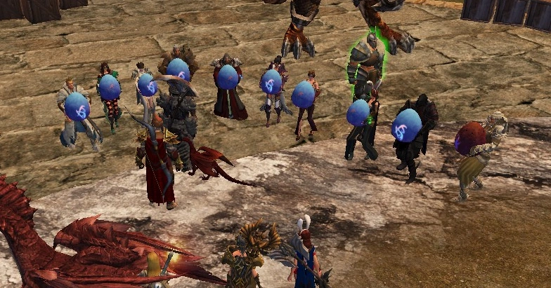 A group of players lined up in Laedis holding dragon eggs to be cared for