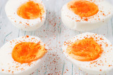 The image "Vier halbe gekochte Eier" from kelifamily is available on Fotolia under a royalty-free license from 1 credit (Credit from $0.74).