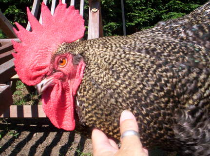 Zumindest einen Vorteil hat die Abwesenheit eines Hahnes. Bei schweren Rassen wie Brahma, Orpington oder Cochin sind die Hähne auf Grund ihrer Masse oft ungeschickt und grob. Beim Tretakt wurde nicht erst eine Henne durch einen abgerutschten Hahn mit dessen Krallen oder Sporen verletzt.